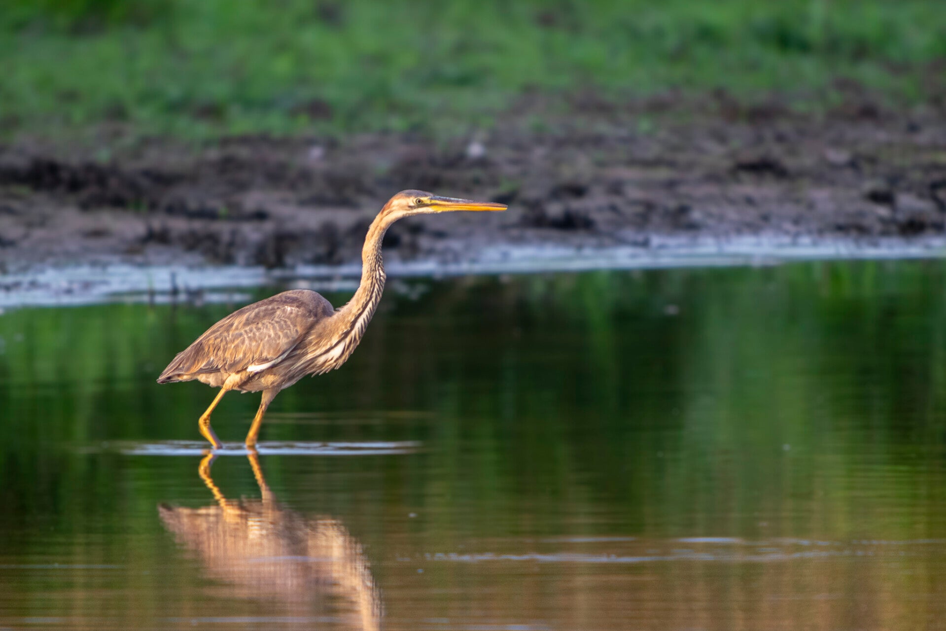 En photo ci dessous : Héron pourpré juvénile (à gauche) et Héron cendré juvénile (à droite).